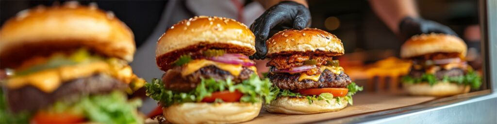 US Beef-Burger, Cheddarcheese, Paprika, Zwiebeln
