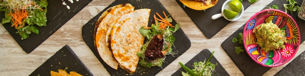 Weizenmehltortillaviertel mit Käse, Jalapenosfüllung und Pico De Gallo (Tomaten, Zwiebeln, Petersilie)
